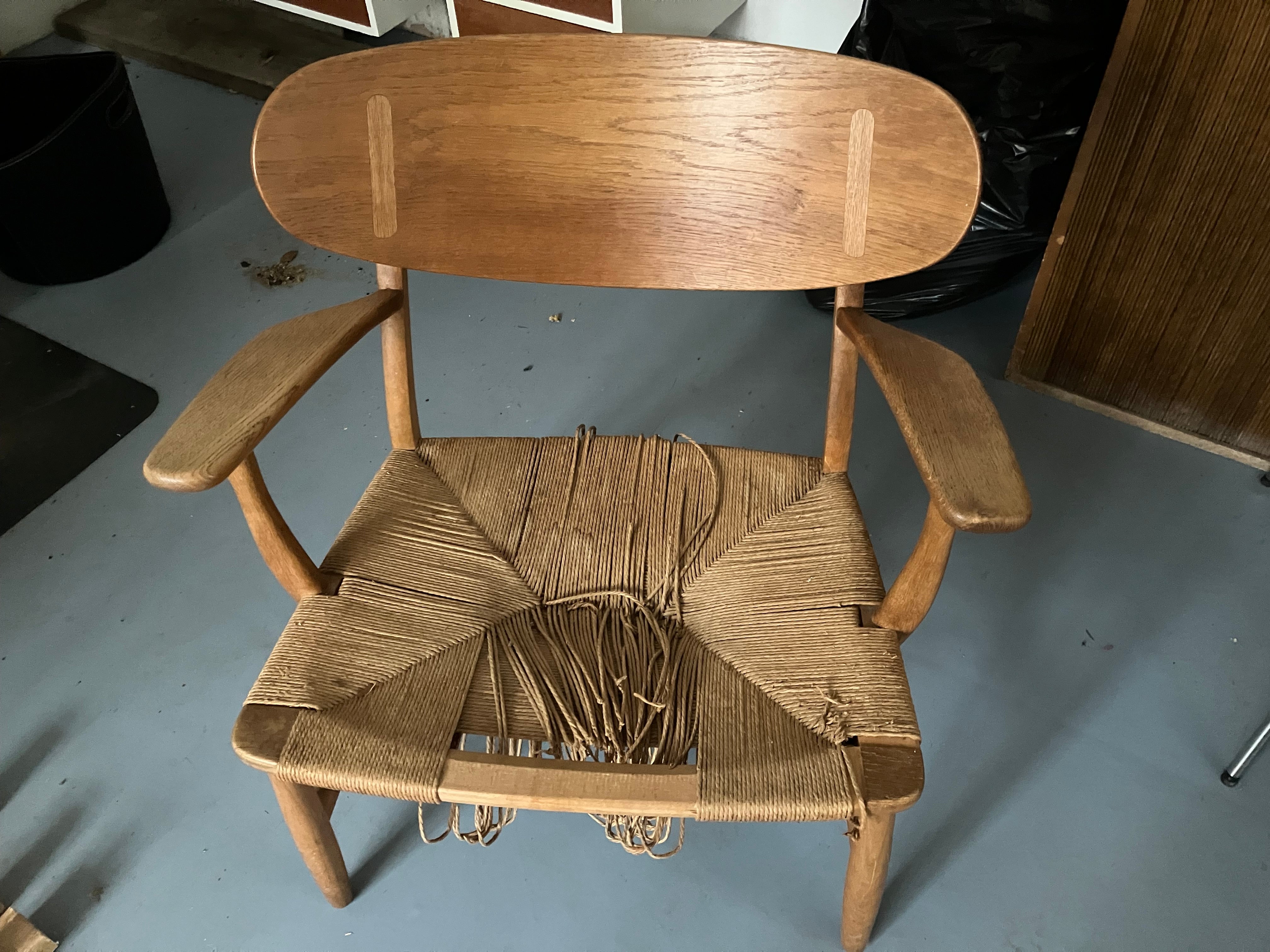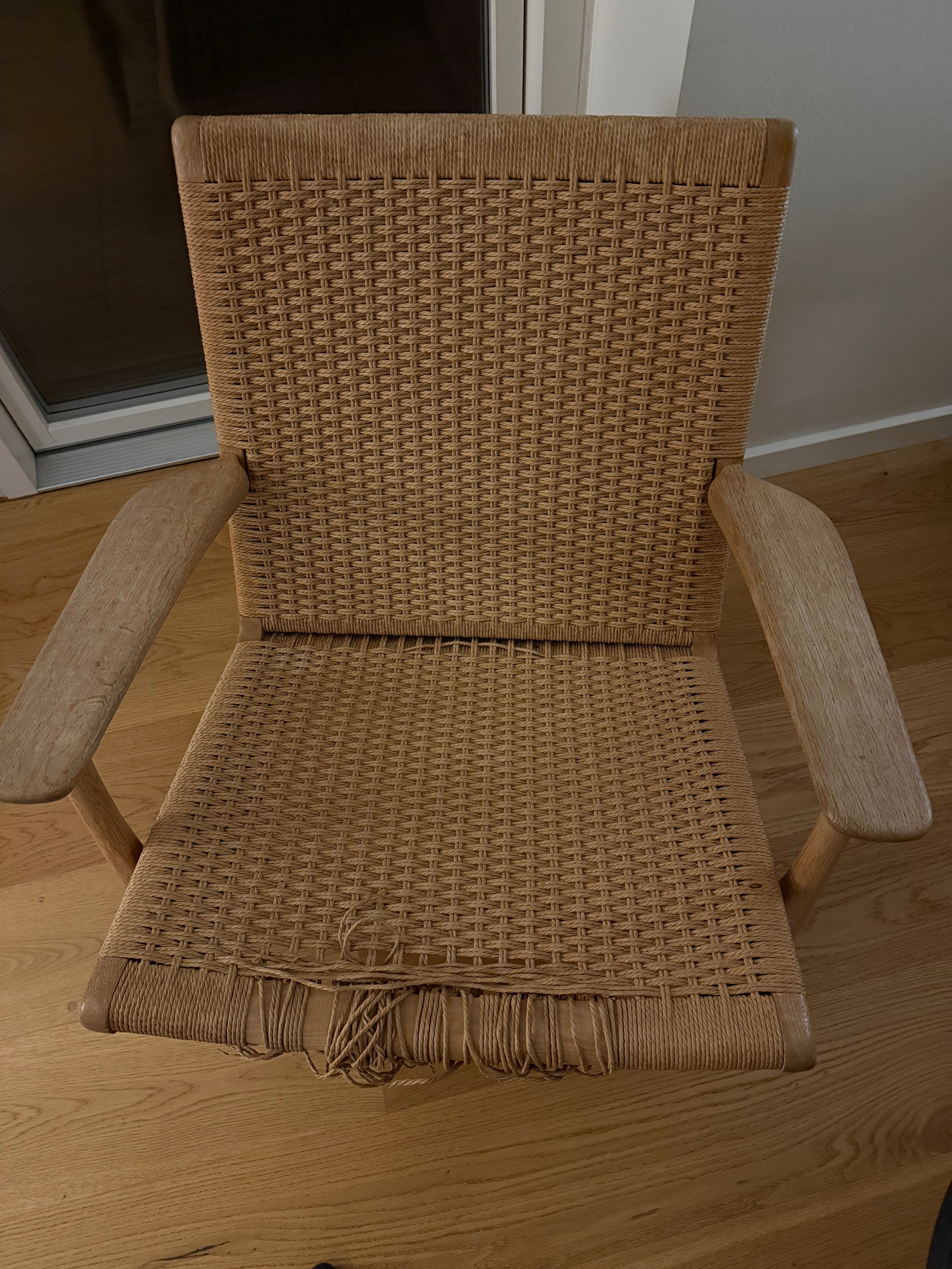 2 stk. CH25-lænestole har fået nyt flet på både sæde og ryg og fremstår som nye.