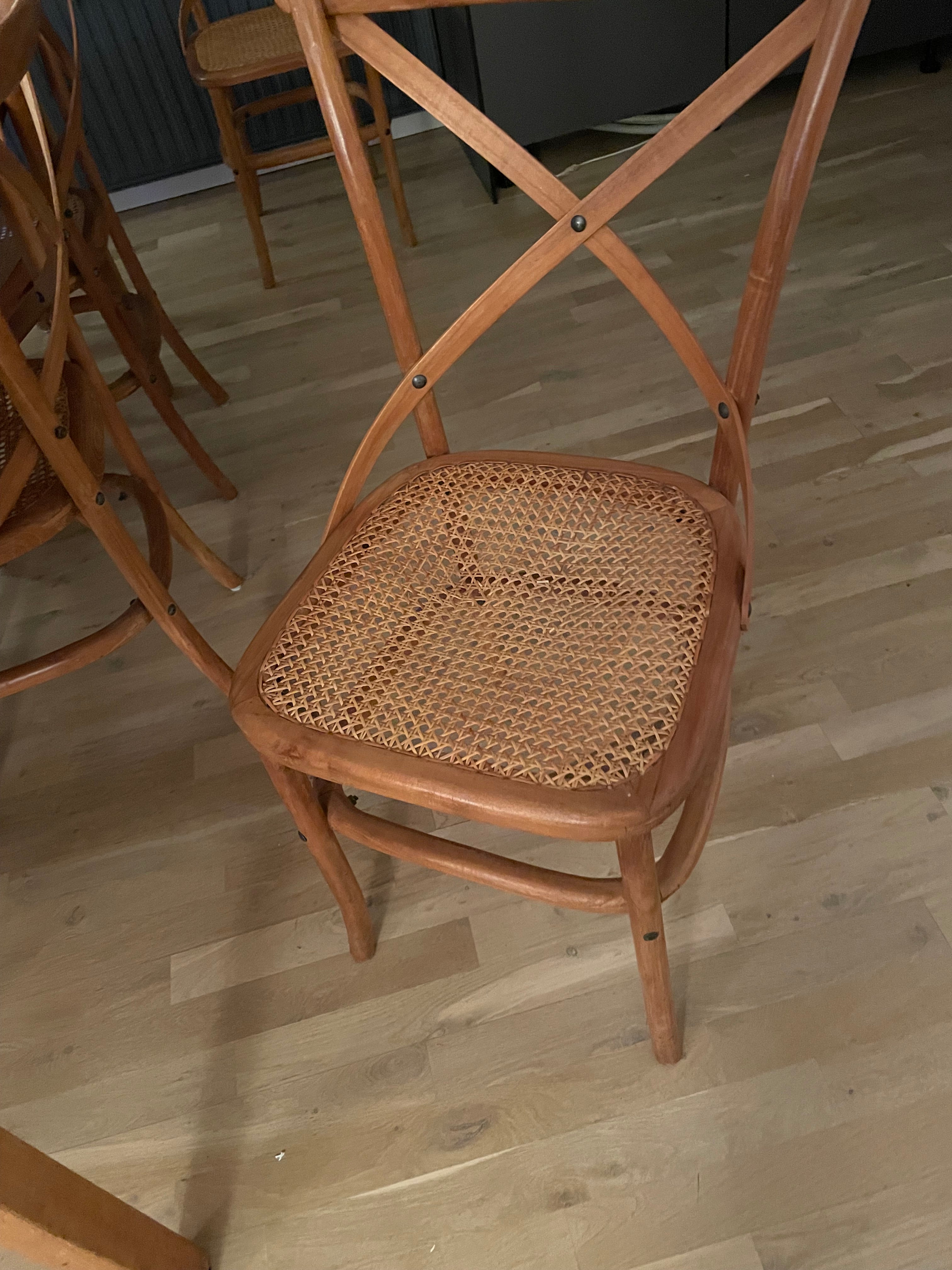 6 stk. folkestole har fået nyt kuvertflet på sædet, mens det originale træstel er forblevet urørt.
