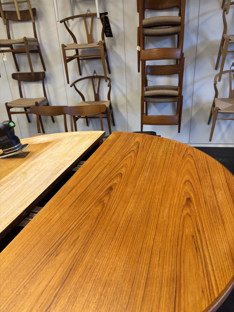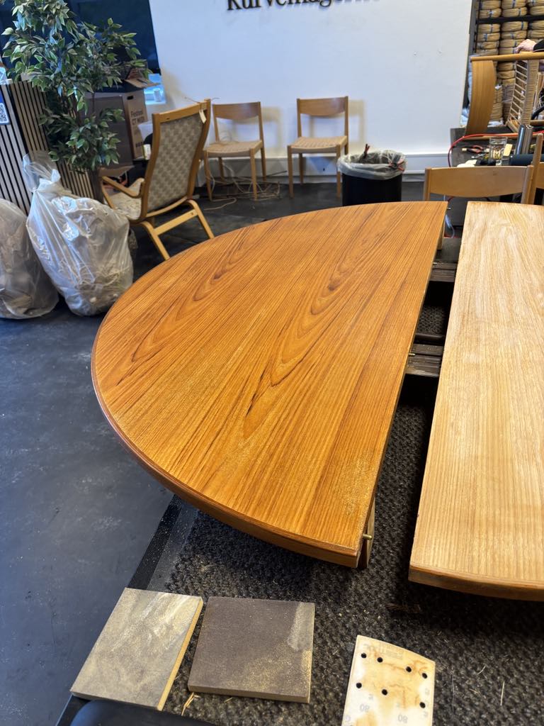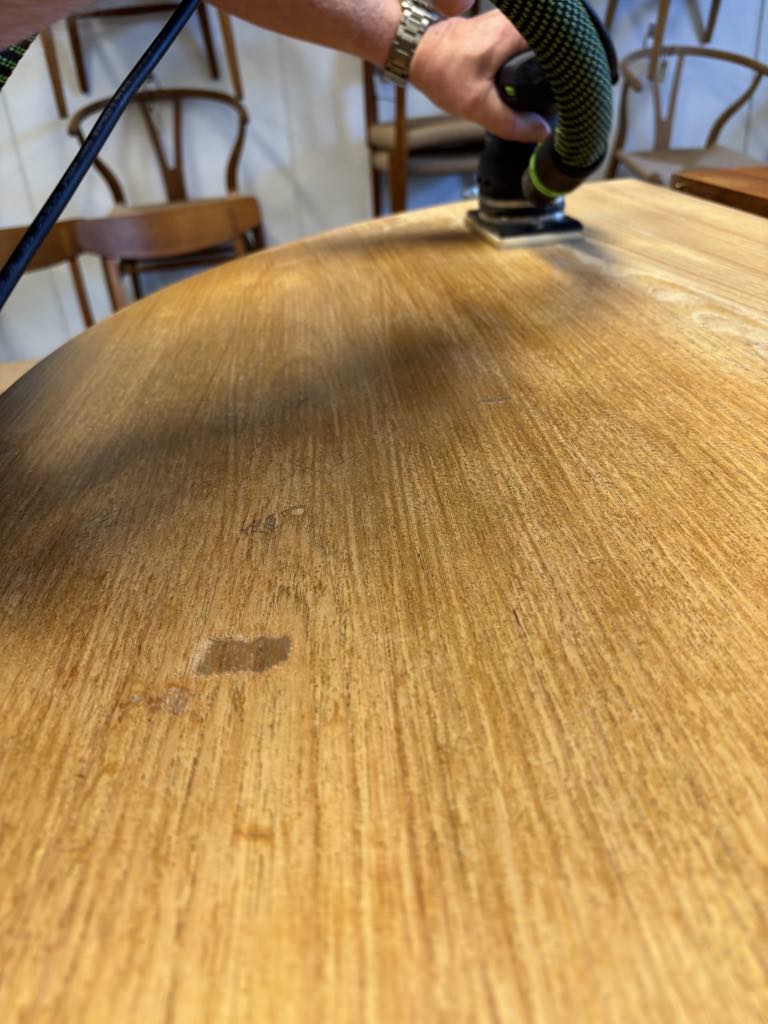 Vi tilbyder primært slibning af bordpladen, da det er den mest udsatte og synlige del. I nogle tilfælde kan vi også hjælpe med let slibning og opfriskning af ben eller understel – afhængigt af materialet og opgaven. Spørg gerne ind, så vurderer vi det sammen.